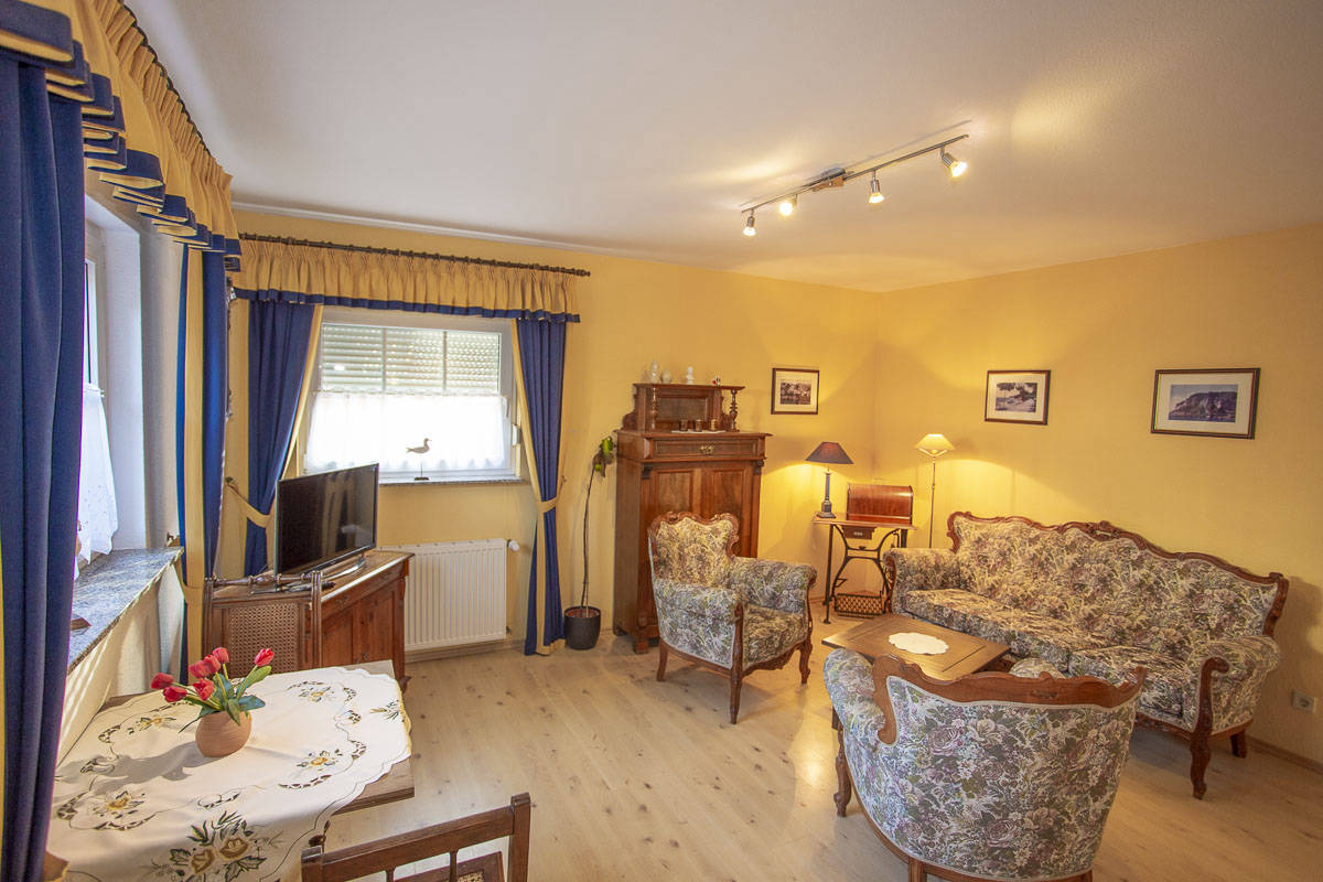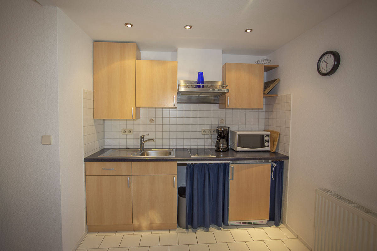 Die haustierfreie 39m²-Wohnung Nr. 4 liegt im Souterrain und besteht aus einem Wohnraum mit Flachbild-TV, Küchenzeile (Kaffeemaschine, Wasserkocher, Toaster, Eierkocher, Kühlschrank, Mikrowelle, E-Herd), einem Bad mit Dusche/WC, Haartrockner, einem separaten Schlafraum mit einem Doppelbett. Es erwartet Sie eine Terrasse vor dem Wohnhaus.